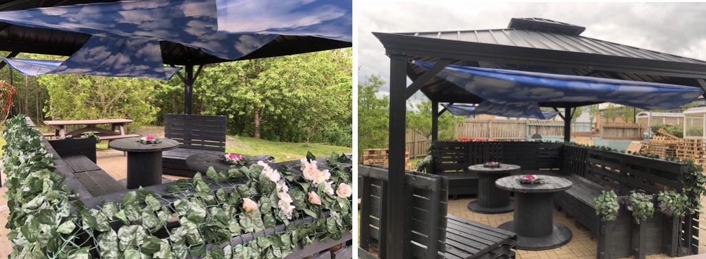 Students converted shelters into seating and planting areas, created outdoor seats and tables, and made beautiful decorations. Now, all students and staff can take advantage of this outdoors space to relax, unwind and reenergise.
